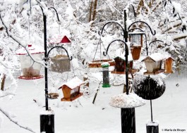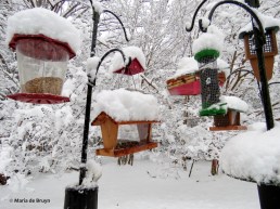 My yard looked beautiful, but I spent time on the 17th repeatedly knocking snow off the bird feeders and heated birth bath so that the birds could reach the food and water.