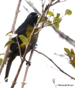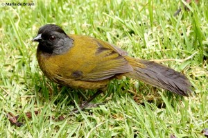 A sooty-capped bush tanager – also called a sooty-capped chlorospingus (Chlorospingus pileatus) was scurrying about the same bushes. At first, I couldn’t get any photos of him, but finally he emerged from behind some leaves. At our lunch stop, I was able to get a close-up photo of this species.