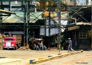 The day before, we had seen sugar cane growing in various places; the varieties in this country are tall perennial grasses. Farmers were cutting some down with machetes in various places as we traveled and we saw trucks and tractors laden with the crop going to processing plants.
