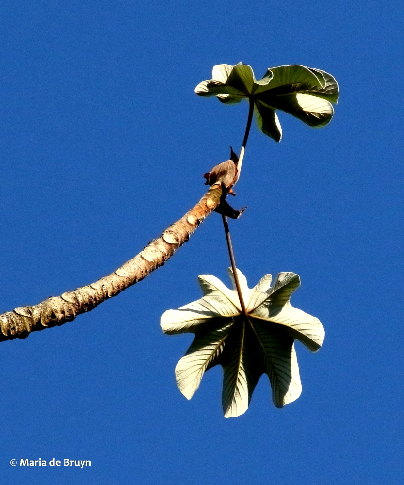After leaving Los Cusingos, we continued our Costa Rican trip by birding along roads, where we saw more of the countryside, including the ubiquitous cecropia trees with their beautiful leaves. We had heard that some of the banana plantations had become diseased and were replaced with sugar cane; this apparently happened in the 1950s when a fungal disease, Fusarium wilt, affected banana crops. Bananas are still a major crop and many small homesteads along the road had a banana tree in the yard. And these fruits were very popular at the bird feeders.