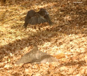 A couple weeks ago, our neighborhood family of American crows (Corvus brachyrhynchos) was making a racket in my yard and when I looked out the window, I could see them harassing a hawk. I couldn’t make out why they were so angry but grabbed my camera for some shots through the window.