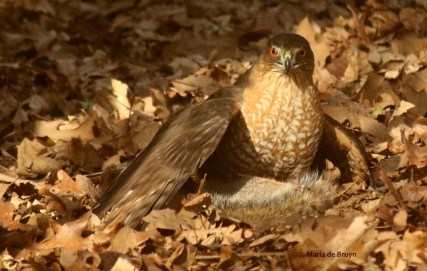 It turned out that the Cooper’s hawk had caught one of the numerous Eastern gray squirrels that live here. The squirrels sometimes annoy me but on the whole, I enjoy watching their antics, so I felt badly for this squirrel, who obviously was not going down without some struggle.