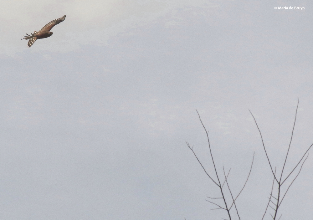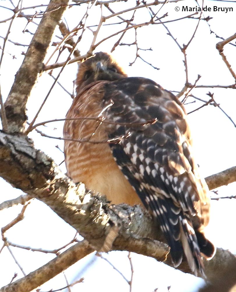 Lately, I’ve been seeing many red-shouldered hawks (Buteo lineatus). They have been flying overhead at the nature reserves. The other day, two flew by calling raucously and then they alighted at the top of a far distant tree. I couldn’t get a photo but did see them mating in silhouette against the late afternoon sky.
