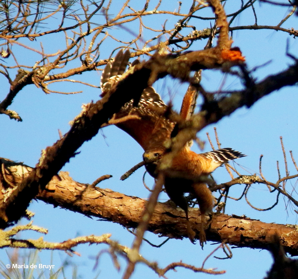 A few weeks ago, a pair of red-shouldered hawks began constructing a nest just down the street from where I live. One afternoon, I happened to see them and one was collecting twigs to build or refurbish a nest.