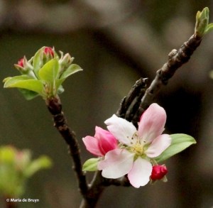 At another reserve, an apple tree (Malus pumila) has lovely flowers emerging.