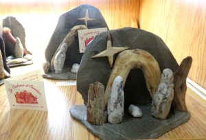 A large, well-stocked gift shop featured shelves of holy water, religious items and a series of stone and wood scenes created by Normand Simard, ‘a man of nature who uses Charlevoix region stones to create men of stone, ducks and bird houses.’ The ends of the pews in the basilica also featured carvings including animals and birds so even in a man-made structure dedicated to thinking about an afterlife instead of our world, nature managed to have its presence acknowledged.