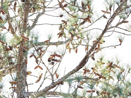 As mentioned in my last couple blogs, finches that usually reside in Canada and the northern USA have come south this year because of a dearth of food in their usual habitats. One of the factors contributing to the shortage is the varying cycles in which cones, seeds and fruit ripen among different tree species.