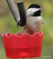 Birds living further away from natural water resources also need to drink and bathe and that is where we can help them out. Small birds like Carolina chickadees and brown-headed nuthatches like to drink from the ant guards on which hummingbird feeders are hung.