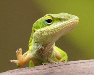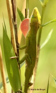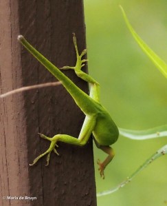 What nice photos of anoles! Your yard would be a perfect place for them to live and multiply. I really like them, too, and was very pleased this summer to see that my one anole of last summer had become two and had been joined by a 5-lined skink. They lived on my front porch, and I would often see them basking on the sunny railing and drinking from the plant saucer that I keep filled with water for the birds also on the railing.