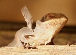 Full-grown males are larger than females, but you can also guess their sex based on anatomical features. When males hope to attract a female for mating, they display a brightly colored reddish flap underneath their jaws called a dewlap. When a female sees it, this may induce her to ovulate. Males also show their dewlaps when defending territory against other males.