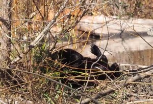 It turned out to be a couple of otters — a delightful sighting to be sure even if not clear as they were far away behind dried vegetation.
