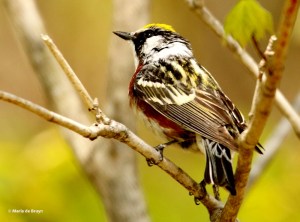 In contrast, the lovely little chipping sparrows (Spizella passerina) are birds that I often see in my yard and at my feeders. This pair was resting in a tree top near a former dairy farm, which is now being turned into a vast vineyard. Much of the birds’ habitat has been removed during this changeover to my great disappointment.