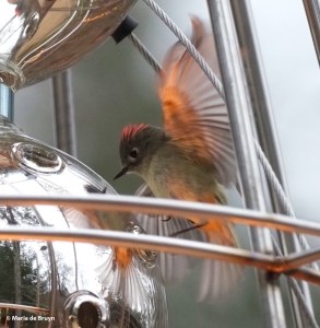 When it’s cold and damp, you can also see birds using other measures to stay warm and resist the cold. Most birds eat quite a lot to put on body fat that is used up at night through shivering (which helps keep them warm). This means you may have crowds at bird feeders with species sharing space as they increase their body mass.