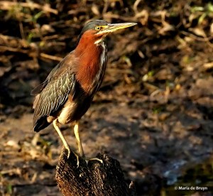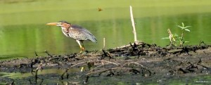 The otters must have been having considerable feeding success because the heron left the beaver lodge and began following them along the shoreline.