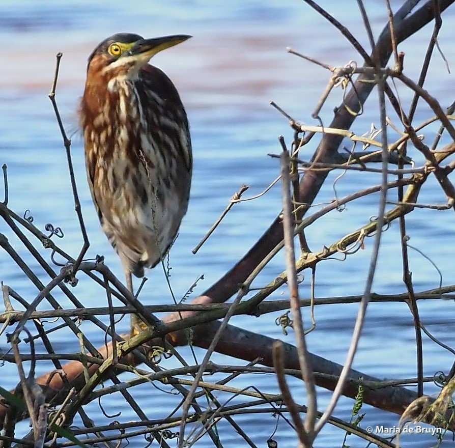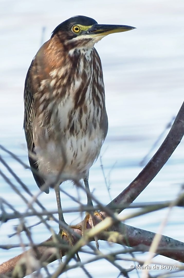 Finally, I noticed the great blue heron perched on the beaver lodge, not moving a muscle or feather. Its statue imitation was impressive. I began walking back and forth along the shore, hoping to spot wildlife but the cold even had the bugs laying low.