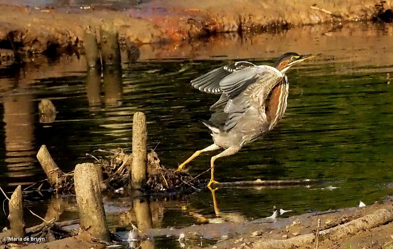 After waiting to see if the otters would leave their resting spot, I decided they had settled down for a lengthy nap. As I turned to leave, I suddenly saw movement and the two otters slipped into the water, with me turning and trying to get a few quick photos.
