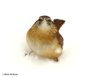 Since converting much of my front yard lawn into flower gardens (and I’m working on that in the back, although there I’ve planted more flowering and berry-bearing trees), the insect population has increased. That has helped the pollination of my flowers and provided the resident birds with meals, like one of the 6 or so Carolina wrens (Thryothorus ludovicianus) who occupy specific niches. One pair hangs out near a water-filled tub; another pair hangs out near a brush pile out back and the third pair hops in and out of a brush pile in the front yard.