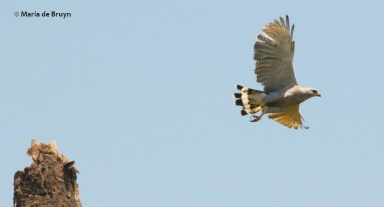 There are both white hawks (Pseudastur albicollis, seen flying very high overhead) and common black hawks (Buteogallus anthracinus) in Costa Rica. The white hawks prey on insects, mammals and reptiles. The black hawks mainly eat crabs, supplemented with eggs and small vertebrates. The one we saw was quite vocal.