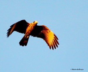 But first let me explain which types of birds constitute the birds of prey as there are some slightly differing definitions. One explanation focuses on birds that mostly hunt vertebrates that are large in relation to their own size. It doesn’t seem quite specific enough as sometimes a great blue heron will eat a relatively big mammal such as a gopher, while I’ve had red-shouldered hawks in my yard fishing the pond for frogs that are fairly small in relation to them. This photo of a double-toothed kite (Harpagus bidentatus) in Costa Rica carrying a small lizard shows that they will feed on smaller prey as well, however.
