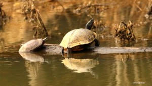 The month of May brought me two especially awe-inspiring events. The first was seeing long-tailed giant ichneumon wasps (Megarhyssa macrurus) preparing for reproduction on a nature trail in Chatham County. It was easy to distinguish the females (right) from the males (above) because they had very long ovipositors (a tubular organ through which a female insect lays stored eggs). In the species I saw, the ovipositor can be 4 inches long!’