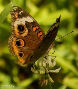 A latecomer to the puddling parties was a lone common buckeye butterfly (Junonia coenia Hübner). This species generates several generations of offspring each summer and I’m always pleased to see them in my own yard.