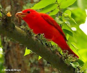 The female was taking breaks from warning-off flights to enjoy an occasional meal, at this time consisting of one of the remaining periodical cicadas that emerged recently.