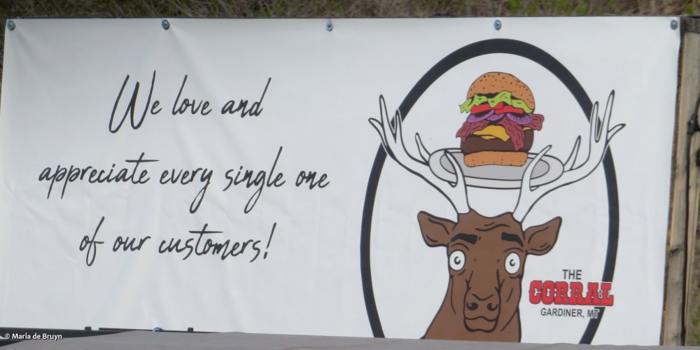 During my 2022 visit, we did not see black bears but had the good fortune to see quite a few grizzly bears (Ursus arctos horribilis). Some were quite light in color, while others had dark fur. A mama grizzly and her cub were the first mammals we saw (due to my friend Joan’s sharp eyes!) and we must have seen at least one or two every day. (If not a live bear, there were plenty of them featured in artwork in Gardiner.)