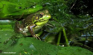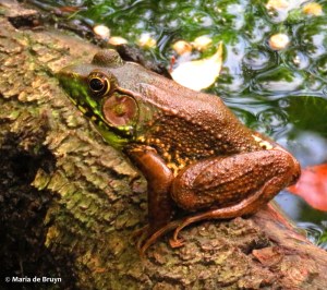 My pond is quite alive with lots of tadpoles and small frogs. This green frog (Lithobates clamitans) is one of the larger aquatic yard denizens.