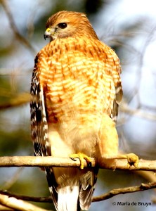 Some weeks later, I saw a belted kingfisher (Megaceryle alcyon) fly by quickly with a frog dangling from its beak at a city park, but the bird was too far away for a good photo. I had had better photographic luck on another morning when I happened upon a red-shouldered hawk pursuing frogs at nature reserve pond.