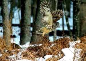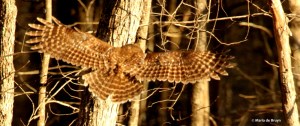 The red-tailed hawk below was being chased away as s/he flew away with a squirrel.