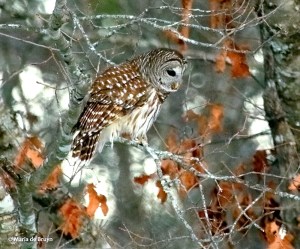 At a small public park in a neighboring town, I watched a red-shouldered scan the field below intently for quite some time. The raptor then surprised me by dropping swiftly down, snagging something small and flying up to another tree to eat.
