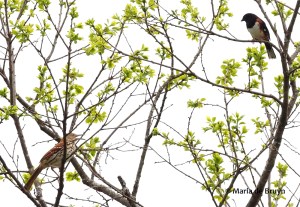 I see them carrying out all kinds of behaviors. Sometimes, they are just flying overhead, showing off their red shoulders as they travel aloft.