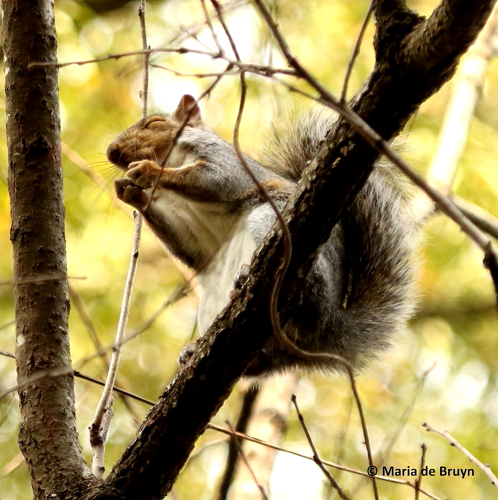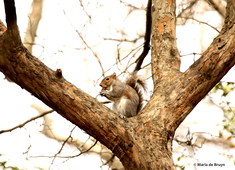 Today is Squirrel Appreciation Day in the USA, a holiday created by Christy Hargrove, a wildlife rehabilitator affiliated with the Western North Carolina Nature Center. The Eastern gray squirrel species (Sciurus carolinensus) was first recorded in the Carolinas, so I thought I’d honor this wild creature by sharing some photos of the squirrels in my yard who sometimes drive me up the wall with frustration. There is one in particular who can get my ire up. Of course, I realize it may not always be the same creature – perhaps several of “my” squirrels are taking turns in trying to overcome my measures to keep them off my bird feeders. But I do think one in particular is especially tenacious and persistent.