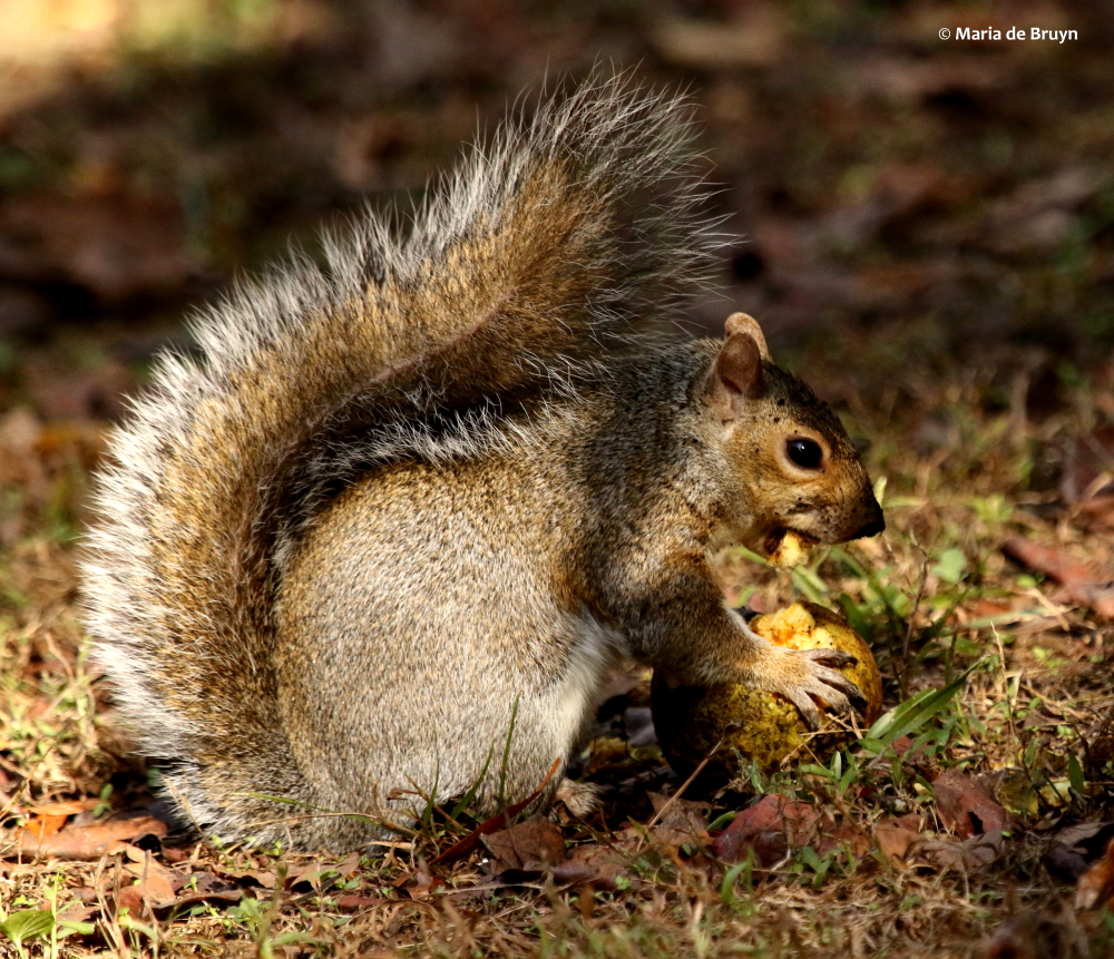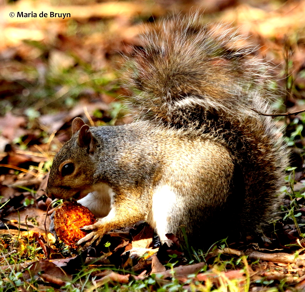 The yard squirrels are lucky since my neighbor has beech trees and I have a couple oak trees that provide plenty of acorns; these mammals therefore have plenty of nuts to store for winter. I periodically see them digging little holes in the lawn and different parts of the garden, “squirreling away” the nuts they have found in the trees. I also saw one burying some grapes that I had put out for the birds; that didn’t seem like a good strategy to me, but I have since learned that they will make temporary caches so perhaps that squirrel was just hoarding a treat for later. They have also occasionally gone after the persimmons.