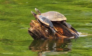 He certainly seemed to be a creature of habit because I noticed that after eating, he would go back into the dense undergrowth for several minutes and then re-emerge to take a couple drinks at the bird bath. Eating obviously was making him thirsty and noticing this habit meant it was possible to get “camera-ready” for another appearance.