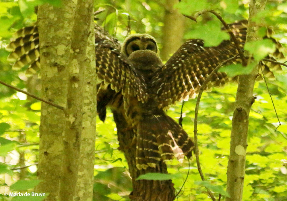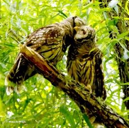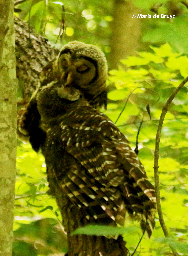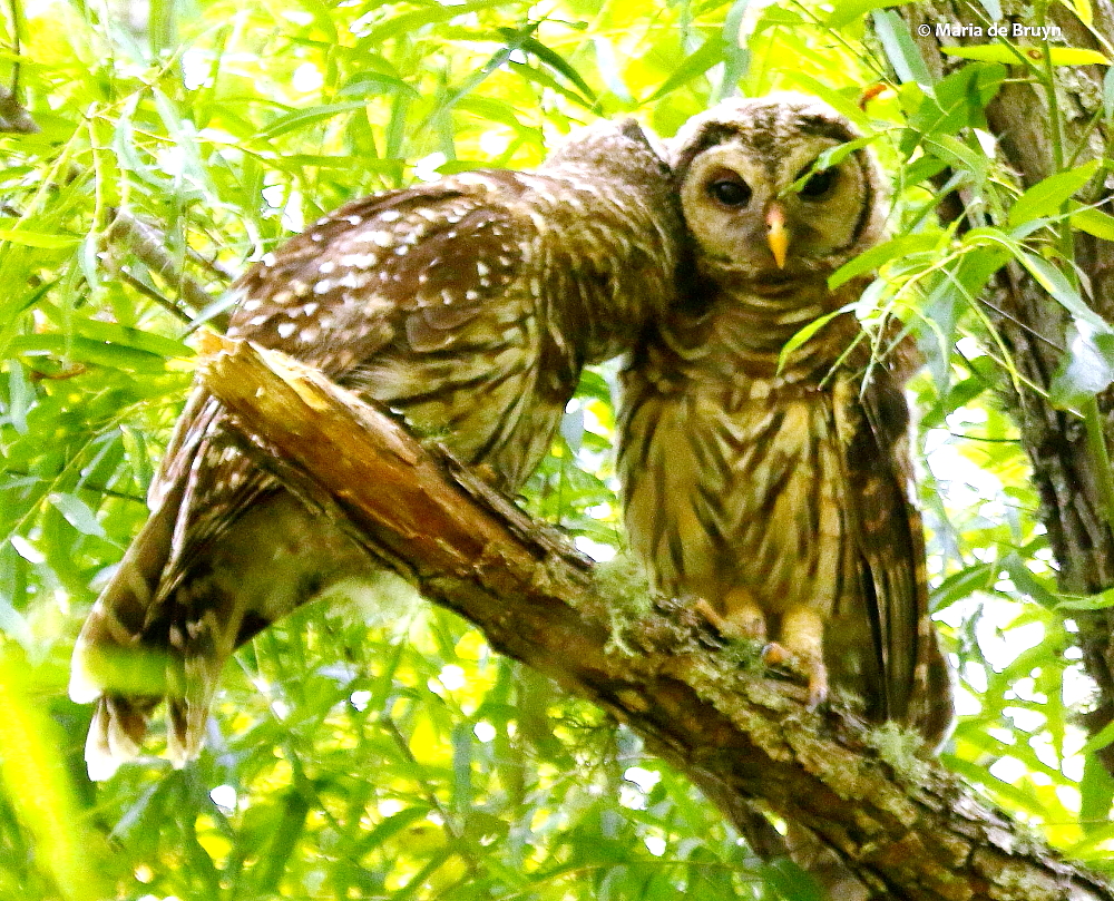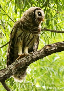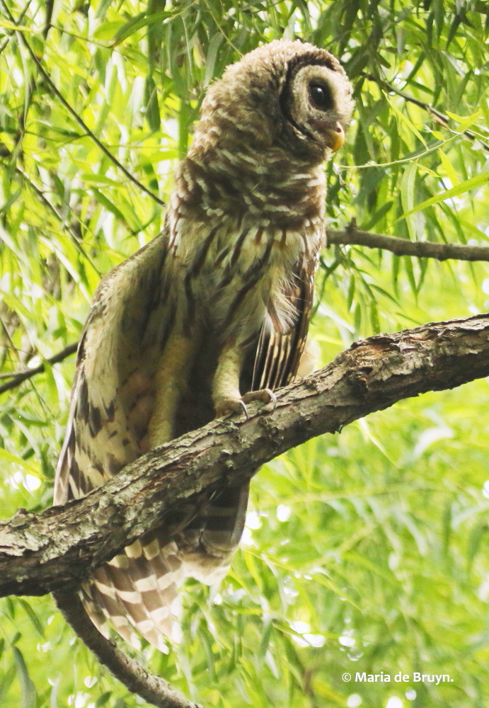 When I stopped seeing the young owls in their usual haunts, I figured the time had come for them to separate and seek out a mate and new territory. Mated owls usually establish nests about 400 yards away from other barred owls although some nests have been observed as close as 100 to 200 yards apart. The young owls may not have flown very far away but they did need to leave their parents’ area. I hope they made it and was happy to have had the opportunity to watch them mature. My next goal for owls – to see a species in the wild that I have not yet seen (e.g., great grey owl, screech owl, barn owl, etc.). I hope you, too, have the chance to see members of this avian group up close!