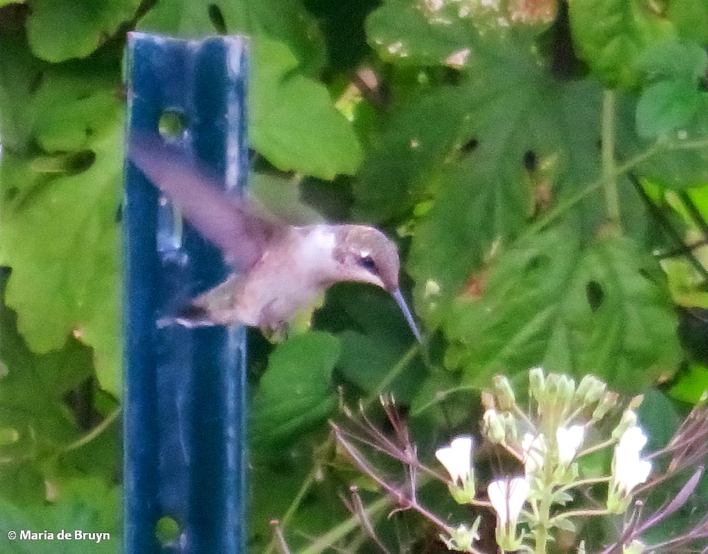 The air was alive with bird calls and song and as dusk fell, you could see the birds flitting from ground to plant to plant. Butterflies, like this red-spotted purple (Limenitis arthemis astyanax), were also flying about the garden, which had a mix of full-grown vegetables and blossoms promising more crops to come.