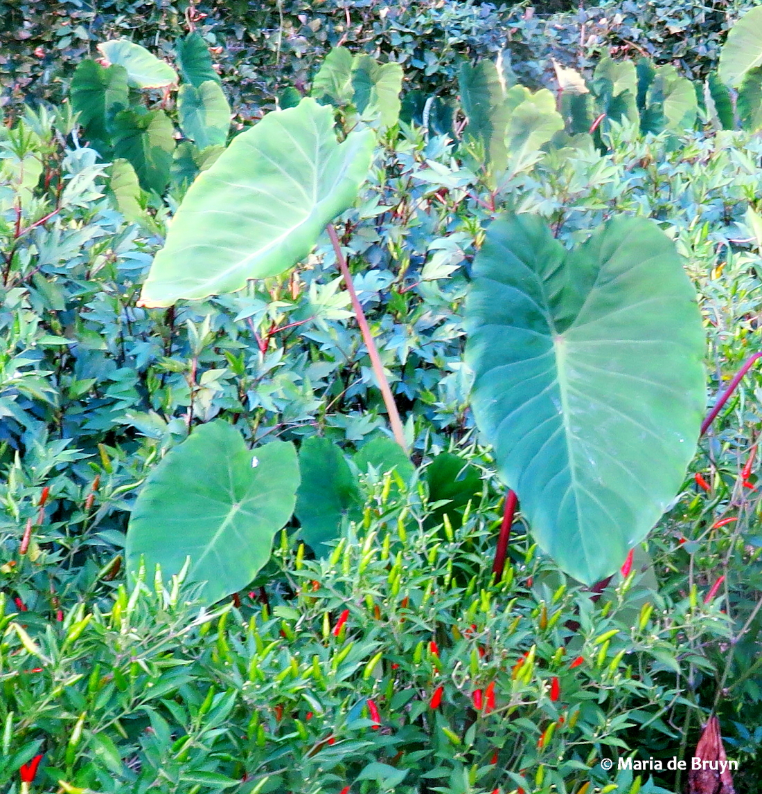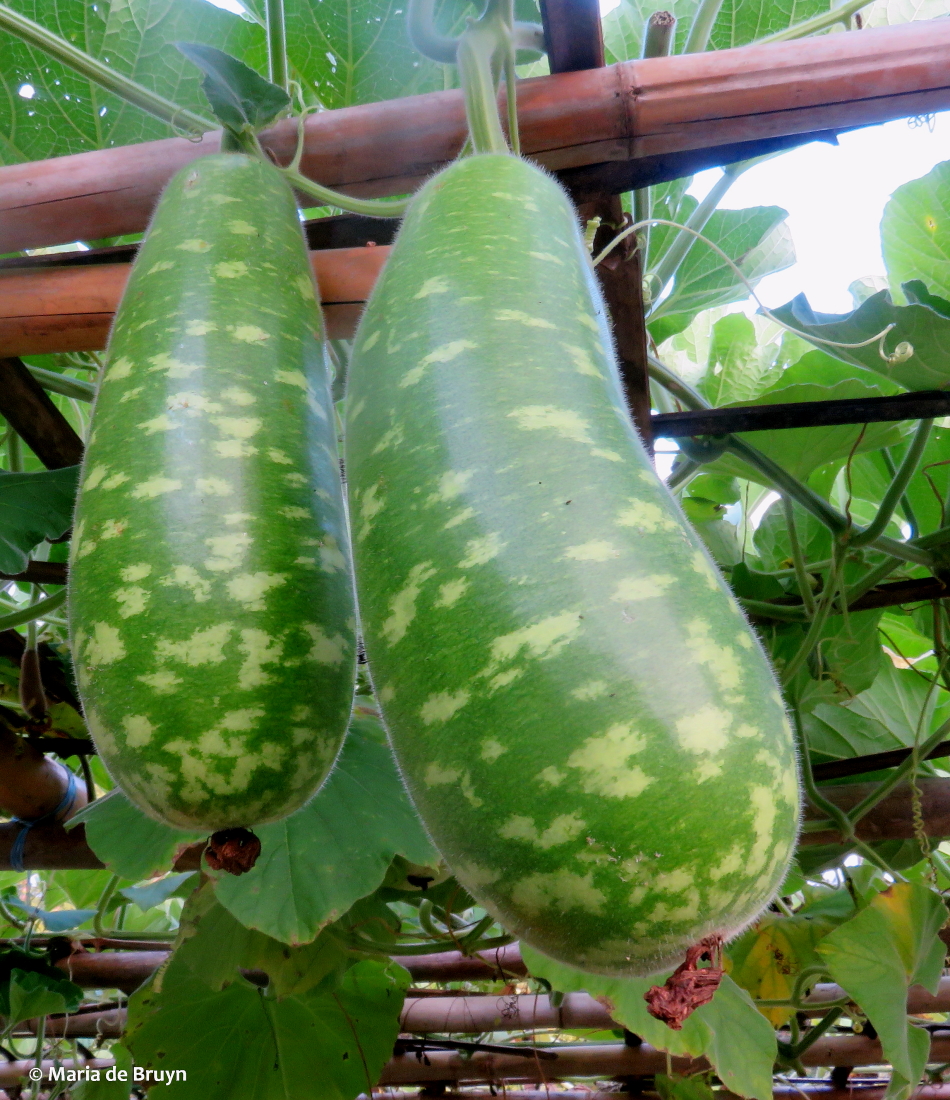 One female farmer had begun growing sesame seed, a crop she had had in her native country and which she was very glad to be growing here. The bamboo trellises are commonly used to suspend gourds and provide shade for crops that need protection from constant sun such as ginger and turmeric.