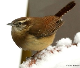 A more muted bird, but lovely nonetheless, is the Northern mockingbird (Mimus polyglottus). When I saw this individual in late December, I was thinking that it must be difficult for them to find food as the vegetation shrivels and insects are in hiding. At that moment, the bird dropped to the ground and was foraging – coming up with a bug to prove that they still could find sustenance in the cold temperatures!