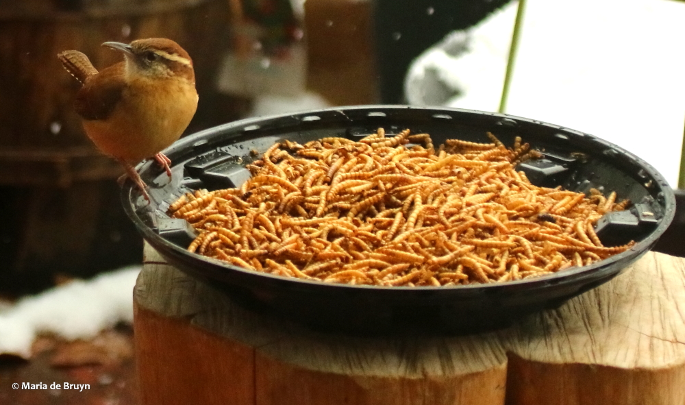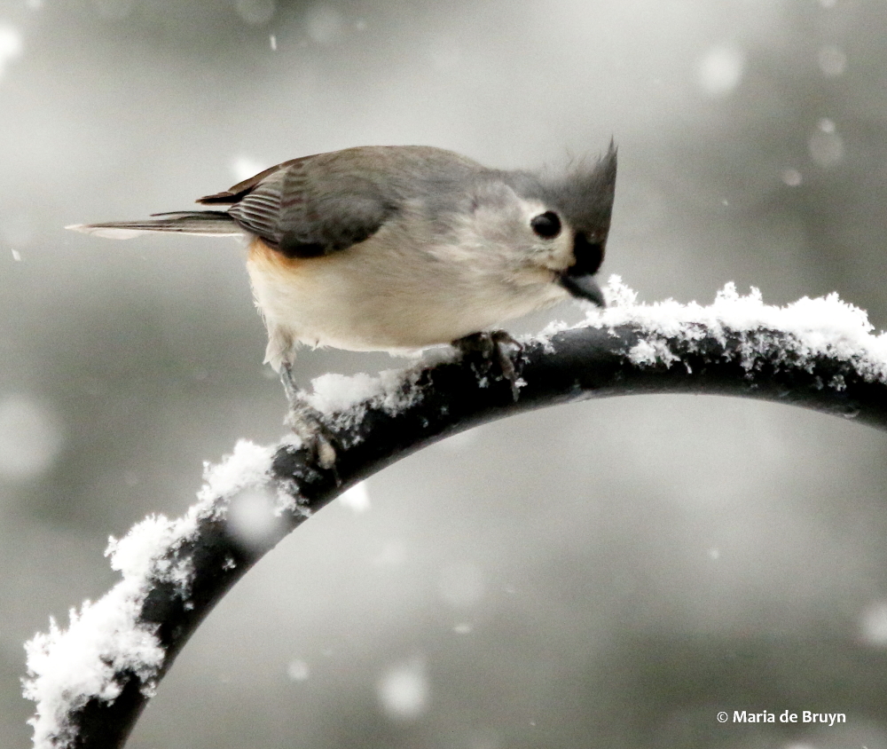 Because tufted titmice (Baeolophus bicolor) visit my bird feeders daily to get nuts and, to a lesser extent, seeds, I associate them completely with that type of diet. It was that assumption that made me do a double-take when I spotted a titmouse on a walk with a long spaghetti-like object dangling from its beak. It didn’t seem like a grass stalk so when I lifted my camera to look through the zoom lens, I discovered it had a worm snake (Carphophis amoenus amoenus) in its beak – a finding that really did astound me.