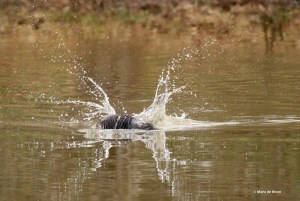 5 otter PA309953© Maria de Bruyn resThe otters don’t always appreciate spectators. Sometimes, they emerge from the water briefly and give me a view shrouded by vegetation before they dive back down. That’s frustrating when you’re trying to get a nice photo, but at least I’ve never scared them enough for them to sound their alarm scream, which apparently can be heard up to 1.5 m/2.4 km away!
