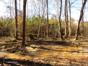 I thought that the drained wetlands at Pokeberry Creek might be the end of my beaver observation opportunities, but then I discovered that another wildlife and recreational park was facing challenges from beaver dams. Sandy Creek Park had had beavers some 5-6 years ago and at that time the mammals were removed (killed). The park manager wants to avoid that now if possible, but the dams need to be controlled since they are causing flooding onto paved pathways which help make the park accessible to persons living with disabilities.