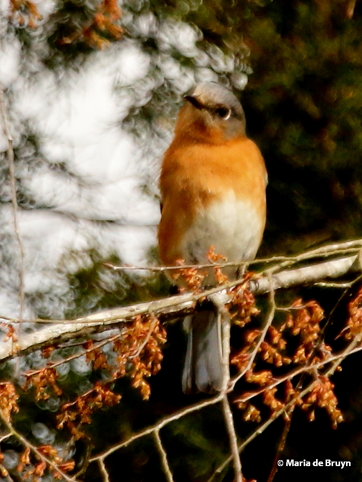 Then on 12 March, we had a day of snow. The male Northern cardinal (Cardinalis cardinalis) and Carolina wren (Thryothorus ludovicianus) sat amid the flakes between trips to the feeders.